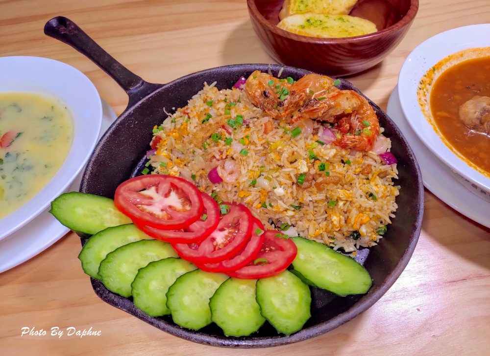 馬來盞是馬來西亞的蝦膏,也就是有加入蝦膏調味,整盤炒飯有食材爆香、大火快炒的香氣,飯炒得鬆散分明,蝦味鮮而不腥,水準不錯。