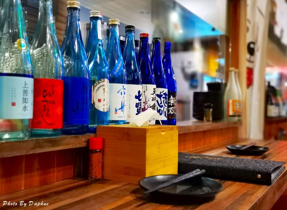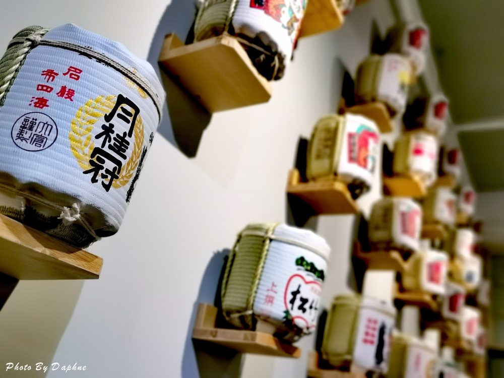 牆面中文標語、日本酒桶、台式門框等裝飾表現出「和台並用」空間意識。