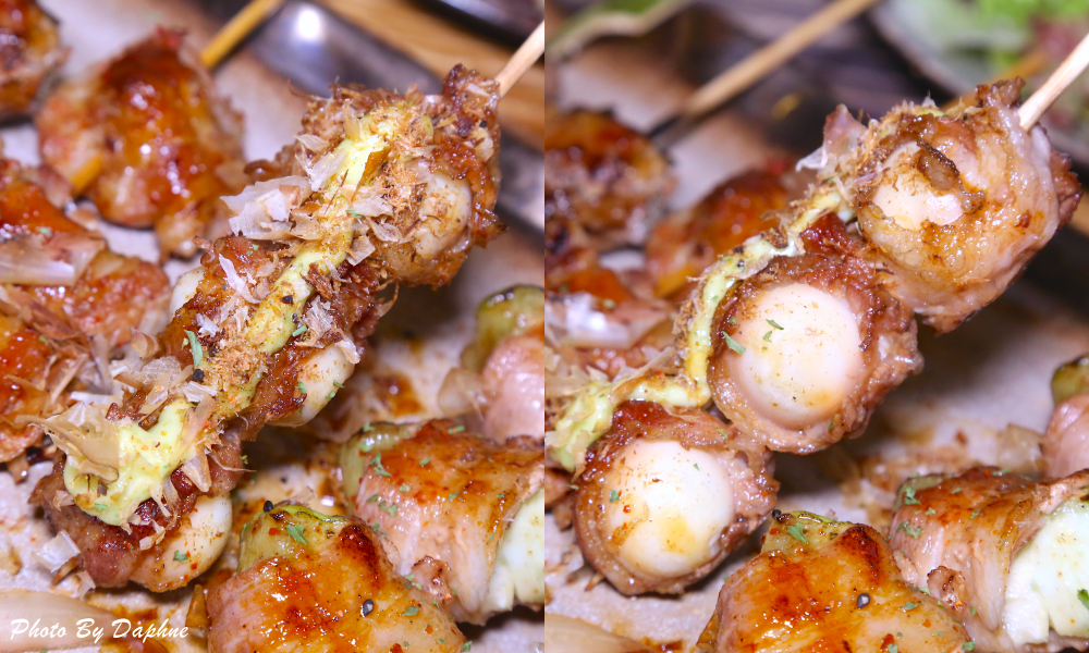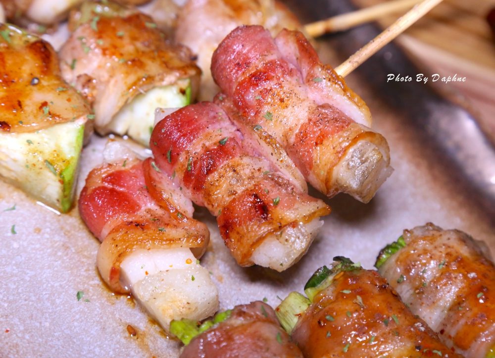 據說是很受日本客人歡迎的菜色,鹹的煙燻培根包覆外酥內軟又有點甜的麻糬,頗具味覺衝擊感,培根也因為恰當的燒烤料理時間,保有鮮嫩度而不乾硬。