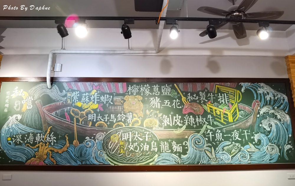 這次的到訪,不只感受店家對餐點水準的持續用心,店內裝飾,對照第一間新竹店的土法煉鋼,手寫字與手繪圖美感都有明顯的提升,這何嘗不是一種成長的軌跡?光是看這些寫出來的菜名跟畫出來的菜,竟然也能勾起食慾。
