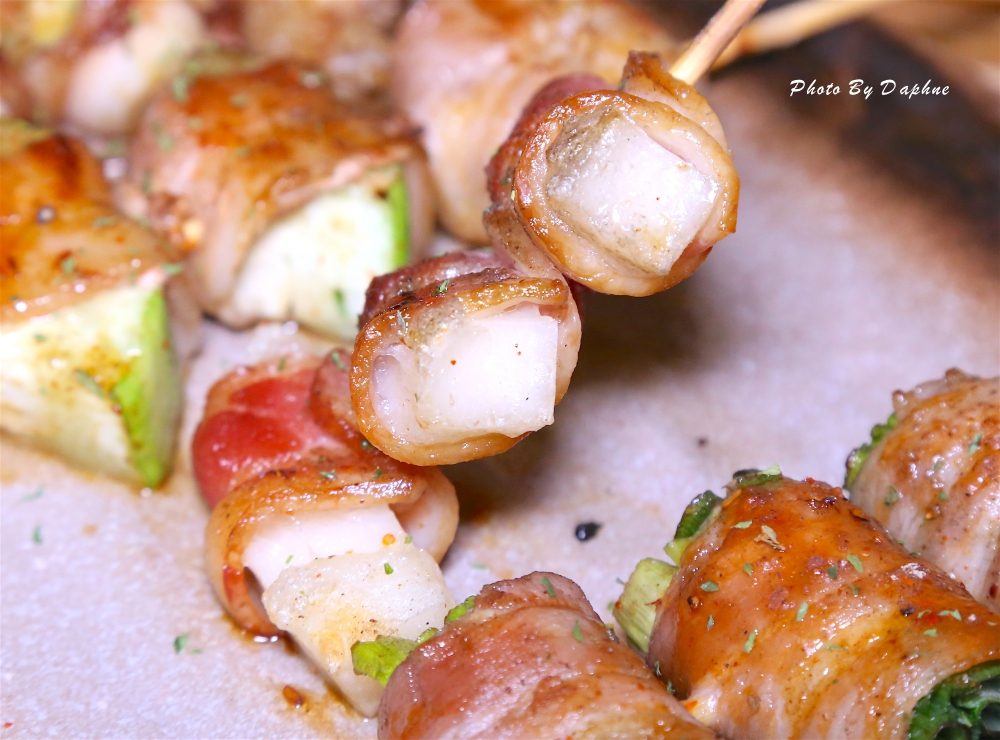 Daphne 對比較肥膩的豬五花接受度較不高,可是私嚐的料理方式用適度的份量,包覆絲瓜烤,豬五花多餘油脂被逼出,入口盡是清甜柔軟的絲瓜蔬汁,大大提升 Daphne 對這道料理的接受度,是很加分的搭配。