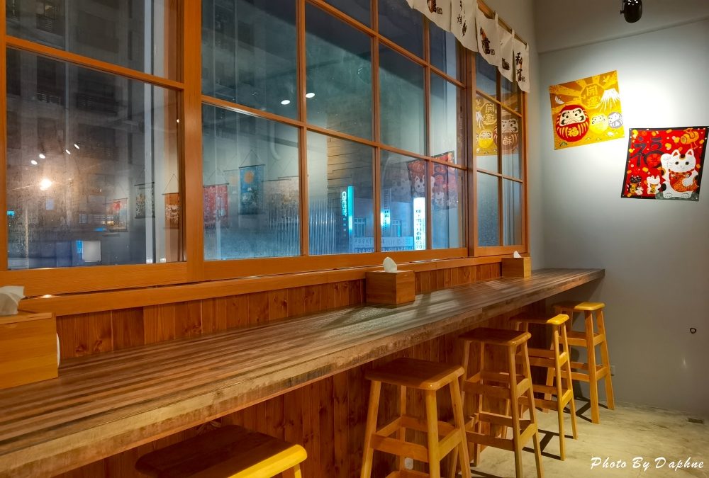 一樓設有吧台高腳位置,可看到廚房內部作業,廚房內部明亮乾淨,看得到師傅用炭火料理食物,但是有做適當的隔絕,油煙味不會直接飄到外面。