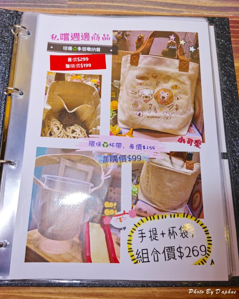 店內販售的周邊商品-帆布袋多設計了外袋與小內袋,比市售帆布袋來得好收納,以設計感、多樣收納性、皮質提把,售價很佛。