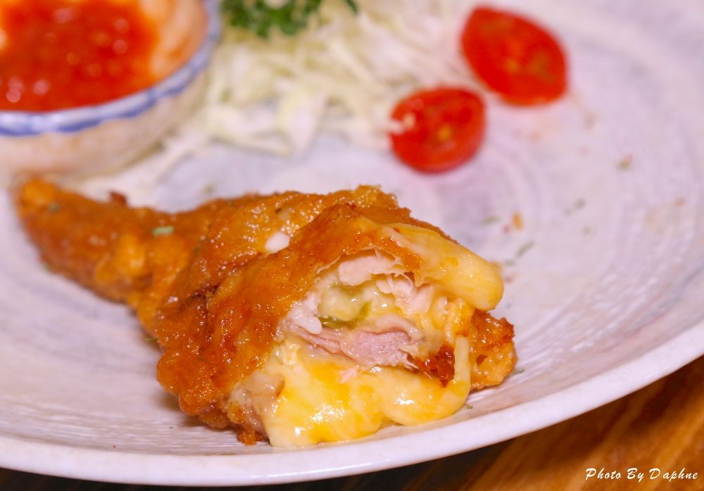 ▼趁熱吃,起司才會牽絲,小心燙口燙手。雞翅內注入不少量的起司,並包入墨西哥辣椒,墨西哥辣椒算是甜椒的一種,不像紅辣椒嗆辣又刺激,辣度僅有微辣到中辣程度,辣中帶甜,雞翅皮脆,辣椒配上濃稠起司與多汁雞肉,再加上店家特製番茄醬,酸甜爽嫩,令人胃口大開。