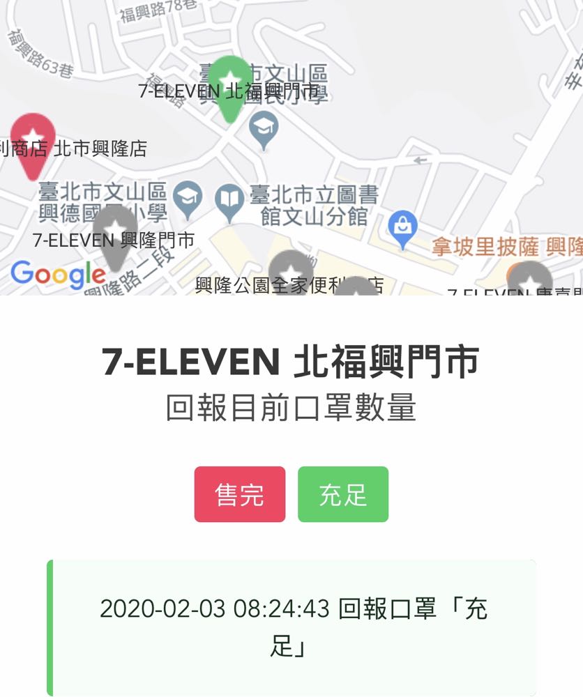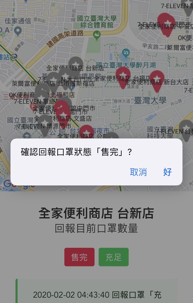 前便利商店的口罩庫存狀況,並且還能讓民眾回報一起分享資訊,集眾人之力讓人人都能有口罩!