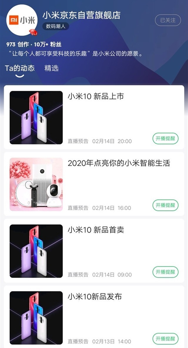 根據眼尖網友指出,小米稍早在自家京東旗艦店頁面測試了直播連結,也因此意外的透露將會在 2 月 13 日下午 2:00 舉辦發表會,以及 2 月 14 日就會進行小米 10 首賣並推出小米智慧生活家居新品等資訊。