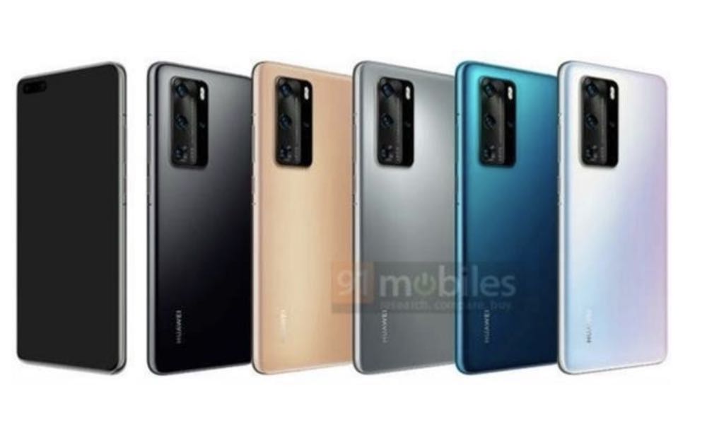 從目前外傳的渲染圖來看,P40 系列的確搭載了 5 鏡頭,並且採用方形的設計。機身正面則是在左上方開孔的全螢幕設計,Pro 版本則是雙前置鏡頭。