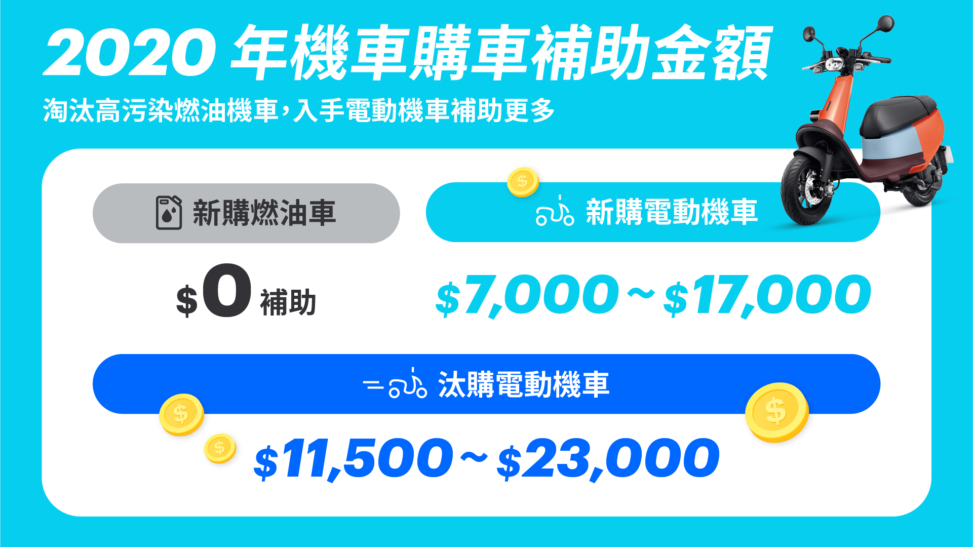 另一方面, 為了響應政府汰舊換新政策,Gogoro 推出「照反有理」活動,凡是符合 2007 年 6 月 30 日前出場資格,前往 Gogoro 門市汰購電動機車,即獲贈 5 萬元對車碰撞損失保險。