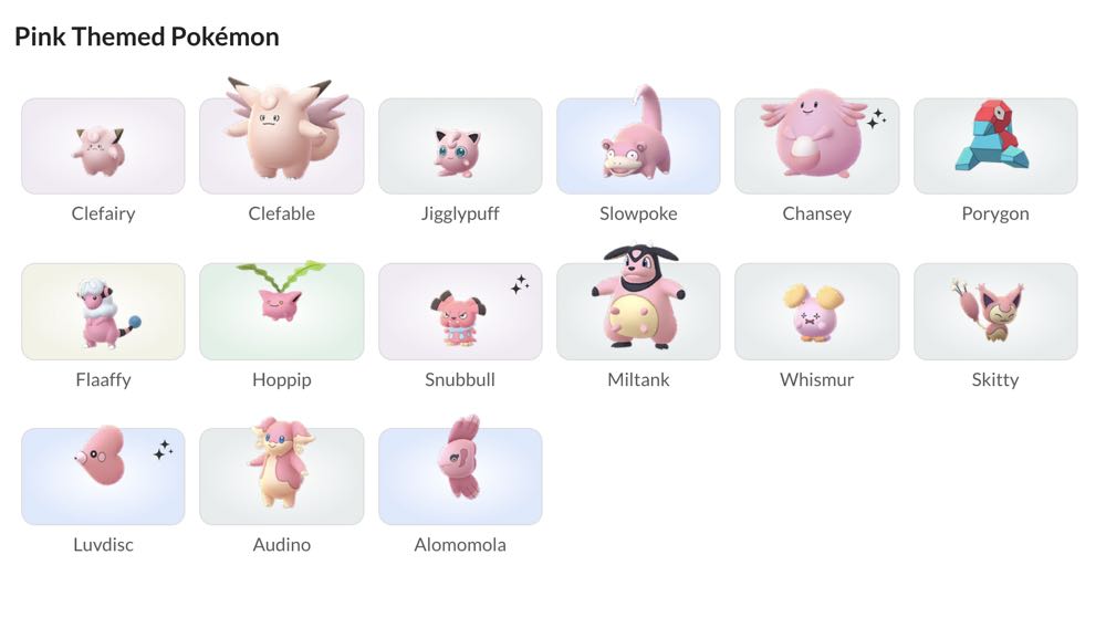 聽力寶可夢差不多娃娃(Audino)和看護寶可夢保母曼波(Alomomola)都首次在 Pokémon GO 中登場!牠們除了會在野外出現,也有機會從 7 公里蛋中孵出。牠們雖然是十分罕見的寶可夢,但只要夠幸運,就算這次的情人節活動結束了,還是有機會遇見牠們喔!