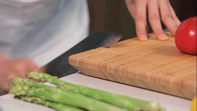 這款 ChopBox 本身特地使用特殊加厚設計與選用天然竹材使 ChopBox 能夠承受 150 磅(約 68 公斤)的重量,竹材紋路特別設計的能夠讓砧板穩定,做菜時不需要擔心砍刀或剁骨頭時會損壞砧板。ChopBox 共分為上下兩層,下方那層是可以滑動出來隨時一分為二,可以把生肉與熟食分開處理而不必擔心交叉污染;或者用更小的切菜板來處理食材殘渣,甚至可以作為小碟子將切好的食物過渡放進鍋里。