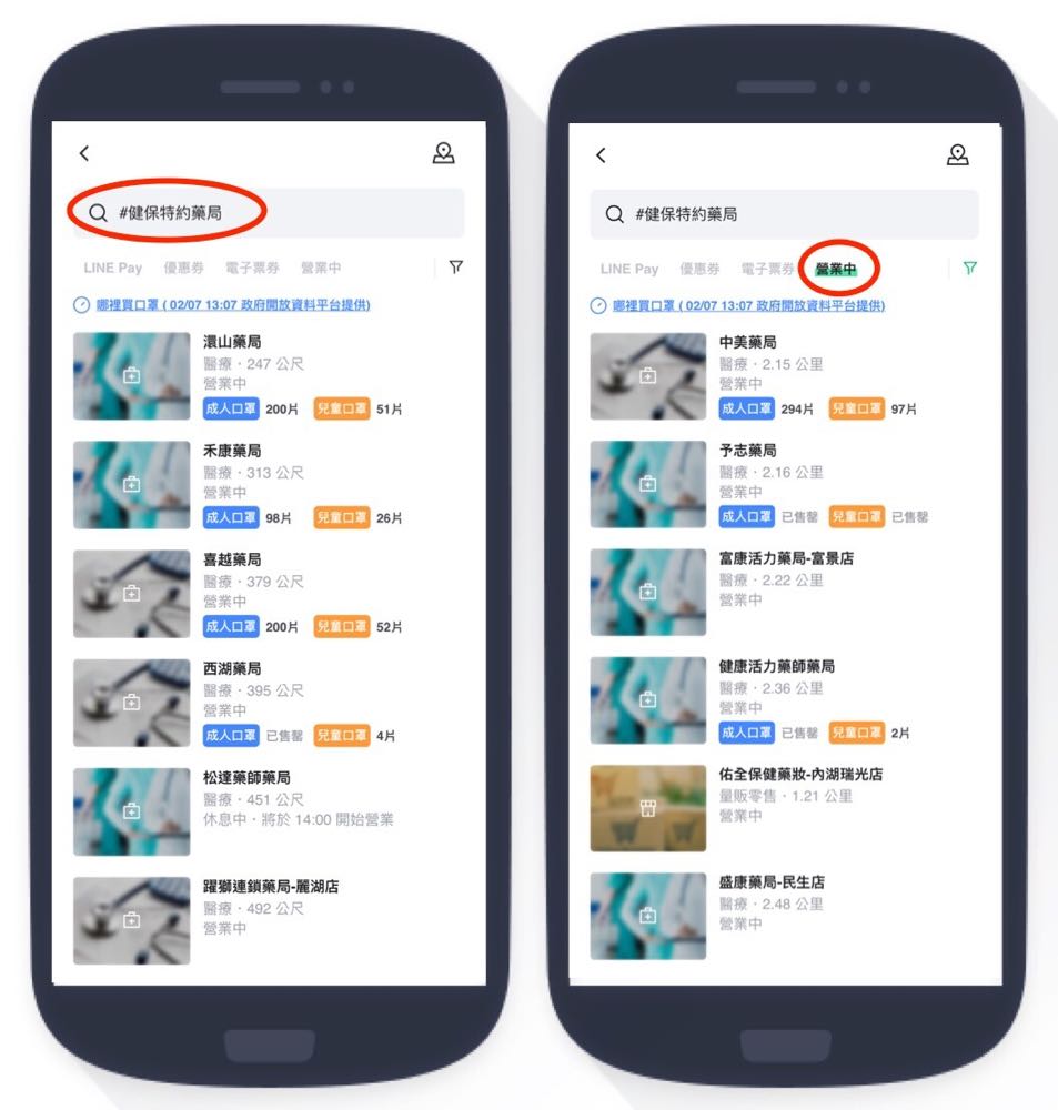 可以直接從 LINE 中依照自己所在位置來馬上看到附近的藥局的確是相當方便,不過要注意的是因為現在有些藥局會採用先發放號碼牌給前往排隊的民眾,然後等他們有空再過來拿的方式,因此在庫存數量上或許看起來還有口罩,不過實際前往會發現早就被預約完的情況,所以如果真的自己有空的時間很緊迫,建議先打電話過去問問看,也能幫自己省下白跑一趟的時間浪費唷!