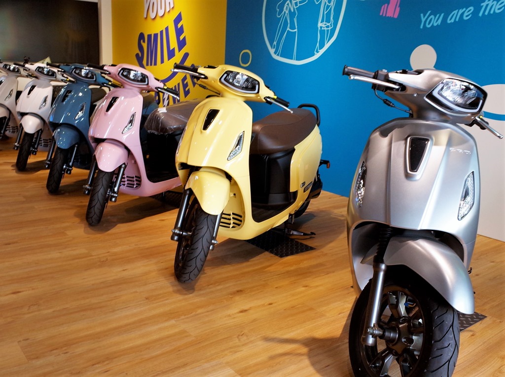 門市,同時也是品牌隨新車開幕的第一間智慧電車直營店;店內寬敞舒適,木紋搭配天空藍、鵝黃色用色,戶外也建置了兩座 Gogoro Network 電池交換站。