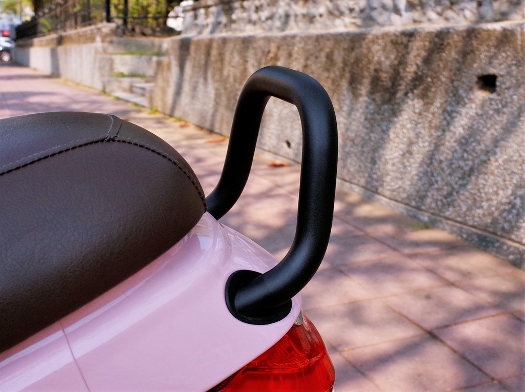 PGO UR1 方後加裝了一個後把手,高度對後座乘客來說應是好抓取的。