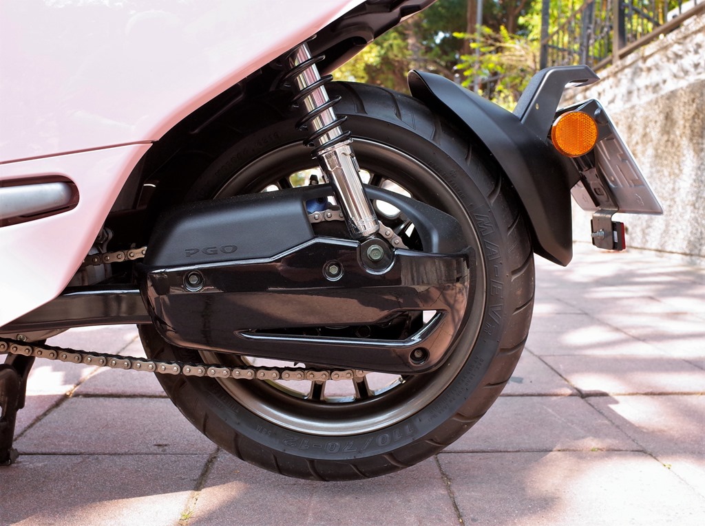 在騎乘過程中,動力表現和大多 PBGN 車款差不多,PGO UR1 搭載 Gogoro 的 G2 馬達,等同於 125c.c. 等級動力,0 – 50km 直線加速儘要 4.2 秒;這動力足以讓我能在台南路上恣意穿梭,起步扭力也足,方格旗模式也能迅速脫離車群。