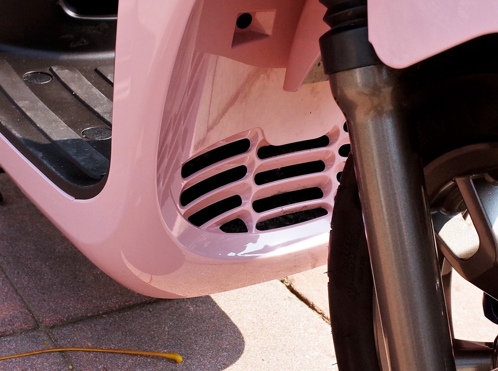 以往品牌為了強調血統,往往不顧美感,硬是在產品最明顯的位置放上 Logo。PGO 不在其中,側邊車殼上的「UR1」字樣雖然面積不小,但是本身採同色調、凹凸輪廓來處理,相對低調,質感也獲得提升。