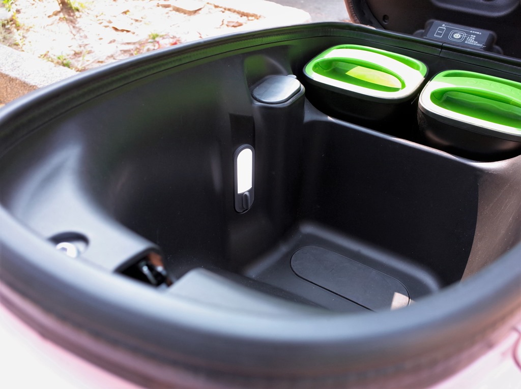 而在坐墊之下的置物空間為 25L。車廂內設置了照明燈、USB 充電插孔(選配)。座墊也配置自動彈起的液壓式裝置(選配)。