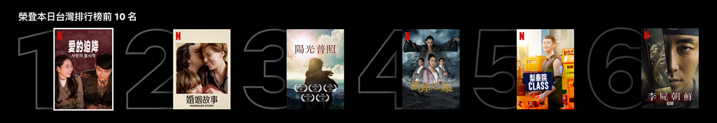 當我們置身在書店,總是忍不住前往 10 大熱門書單區域瞧一瞧,好當作買書的參考。Netflix 新功能擁有類似的作用,官方表示排序是每 24 小時更新一次,因此每天看到的排行作品可能不太一樣。