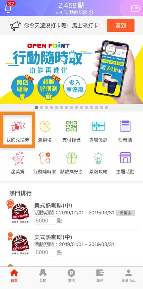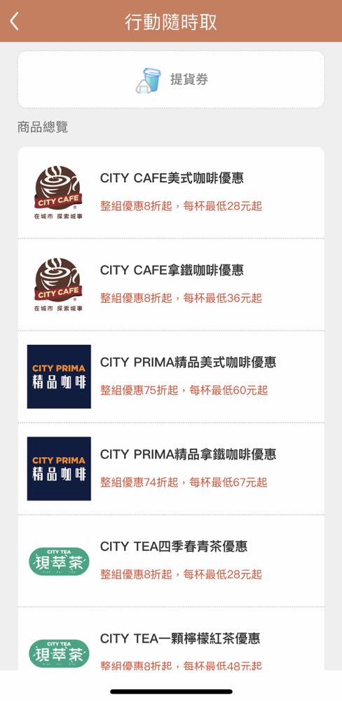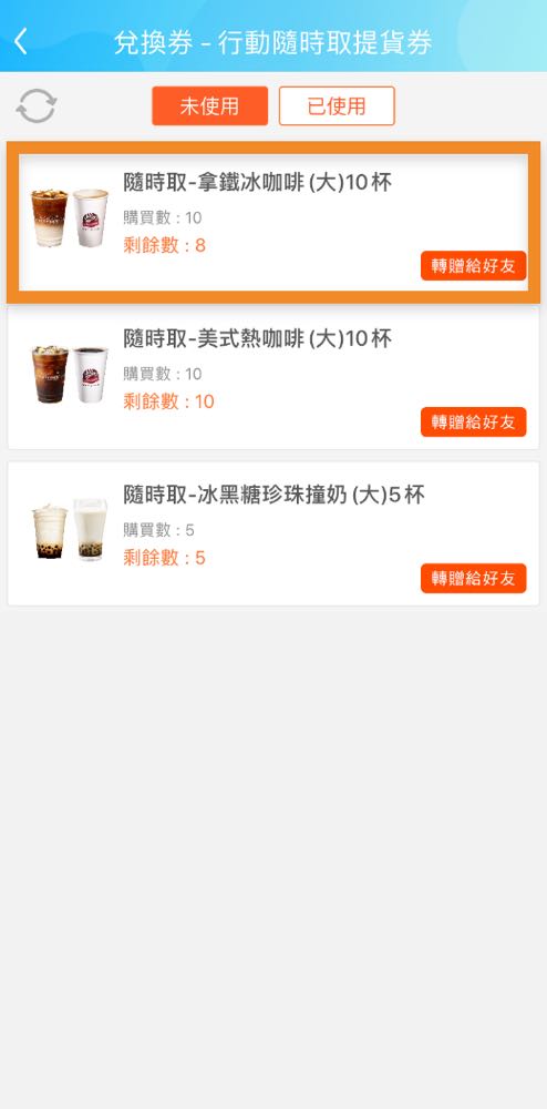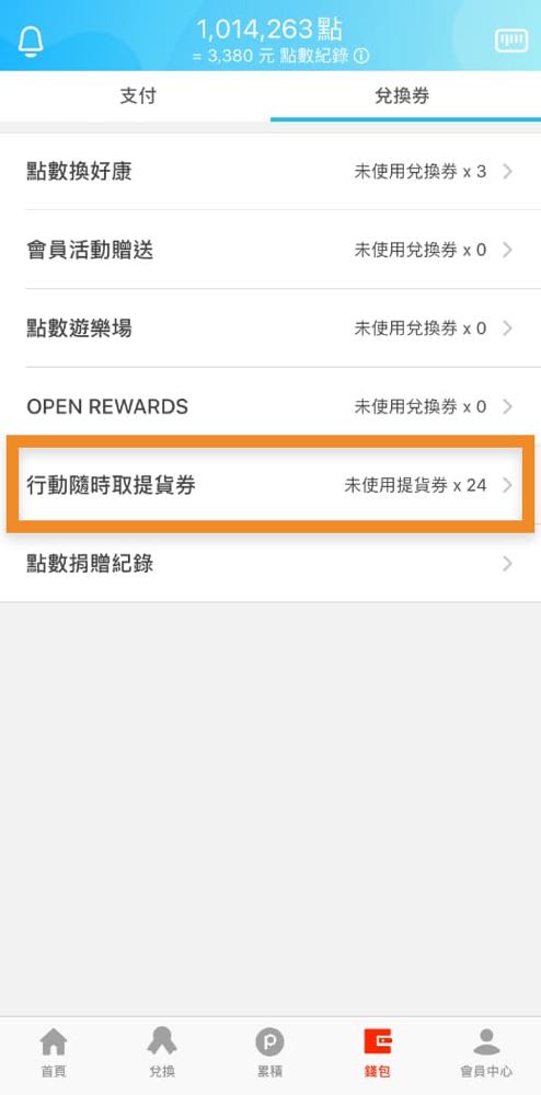 等到購買完成,日後在要領咖啡的時候開啟 OPENPOINT App,選擇「我的兌換券」>>> 「行動隨時取提貨券」或是一樣在首頁中選擇「行動隨時取」>>> 「提貨券」