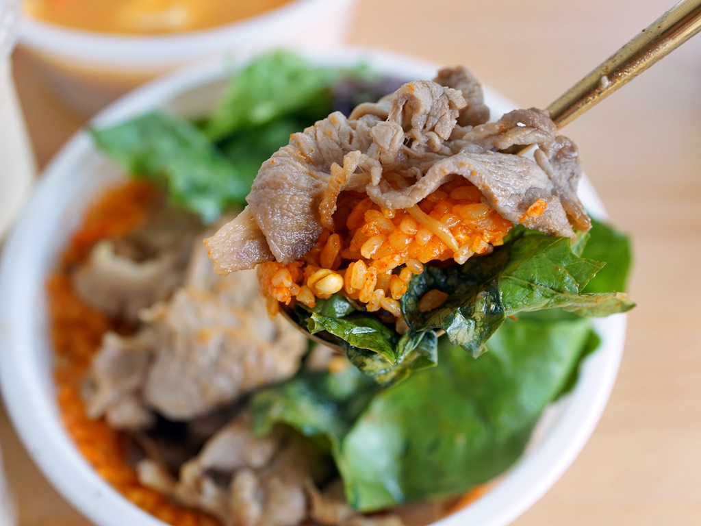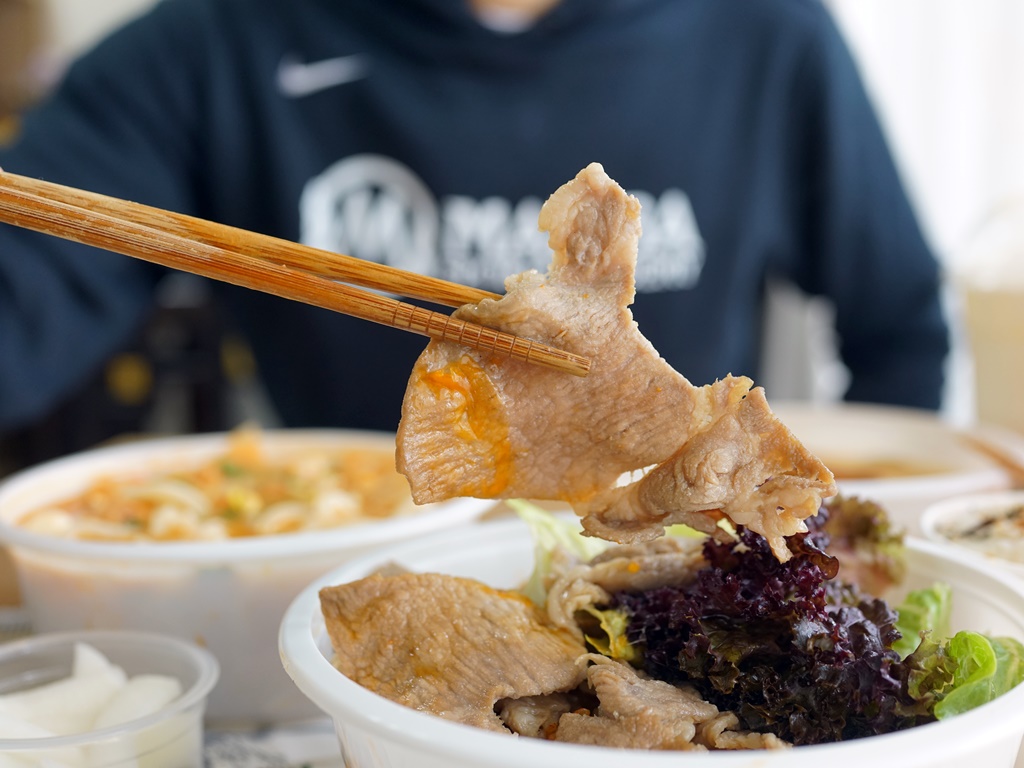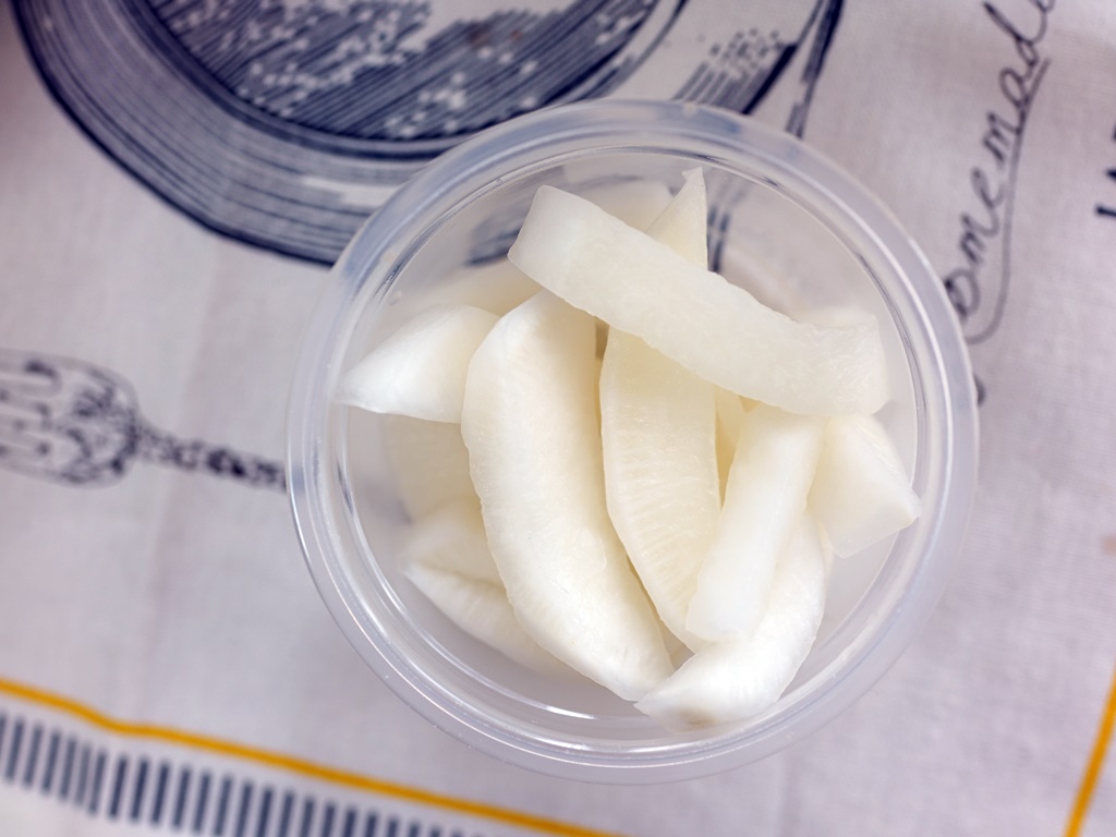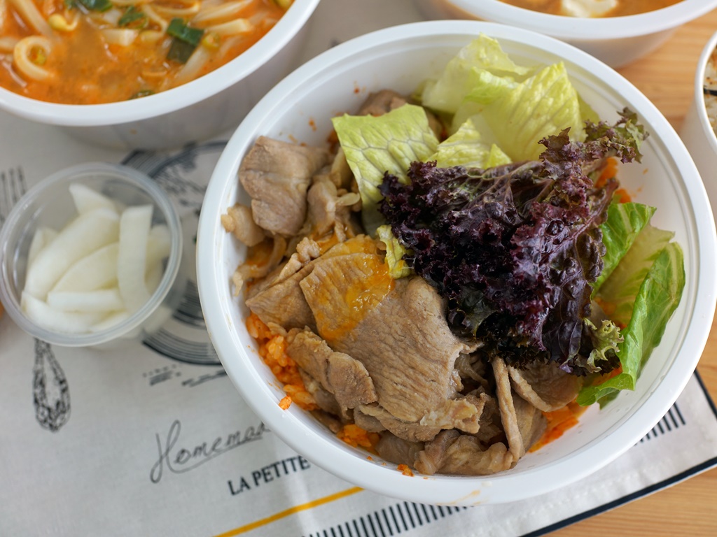 除了嫩豆腐煲與烏龍麵,韓食鍋還有石鍋拌飯的選項,套餐一樣有包含手搖飲料和醃蘿蔔一份,店家已經先將拌飯拌好,再鋪上肉跟生菜,雖然跟在餐廳熱騰騰現拌的石鍋拌飯不同,但畢竟沒出門嘛,味道有八分像就覺得不錯了!然後我真的要大推一下他們的醃蘿蔔,非常好吃,超脆的~