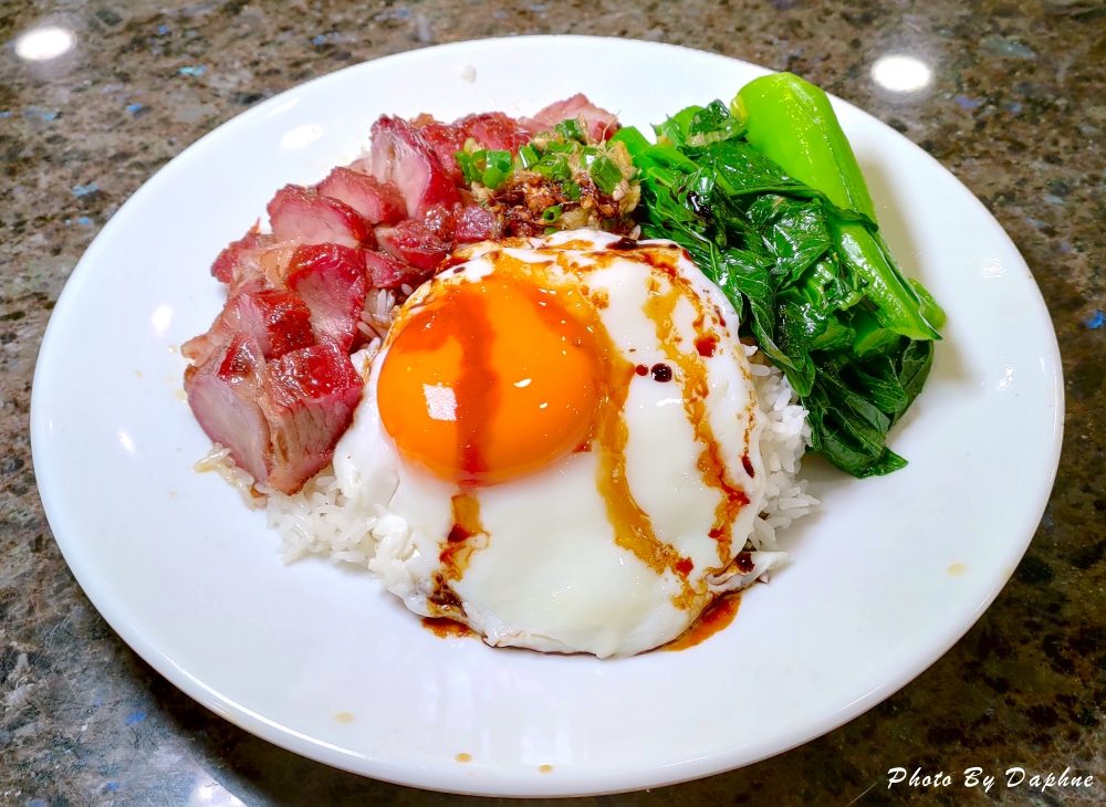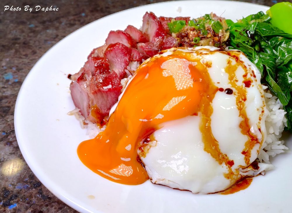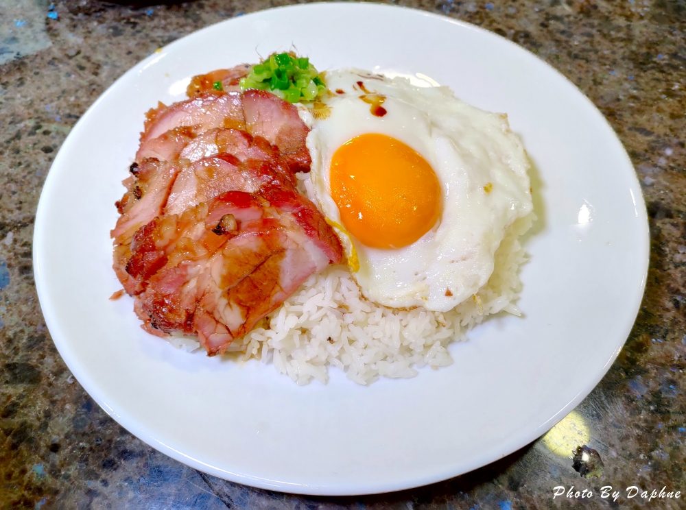 就在我們邊吃邊拍邊講垃圾話的時候,老闆娘似乎發現了什麼,忽然拿一盤黯然銷魂叉燒飯,用廣東話說,幫忙拍一張照片這盤飯請你們吃….這一道菜單沒有列出,想吃可以拿照片跟店家說。