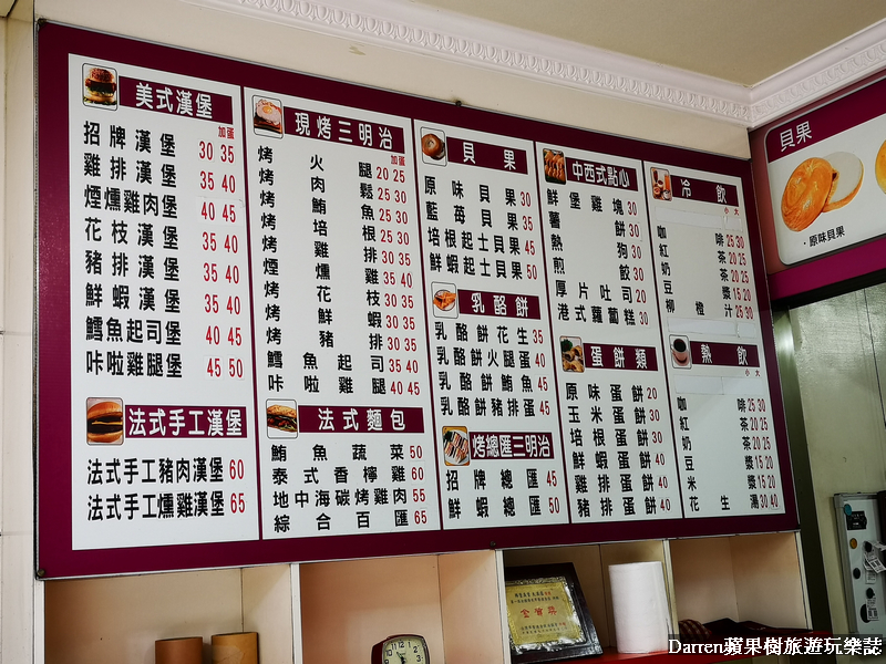 店家一邊賣中式早餐有蛋餅、炒麵、豬血糕、肉羹麵等,一邊賣西式早餐有漢堡、三明治、貝果等,中西早點都有的早餐店,讓我想起南霸天丹丹漢堡也是一樣中西早點都有