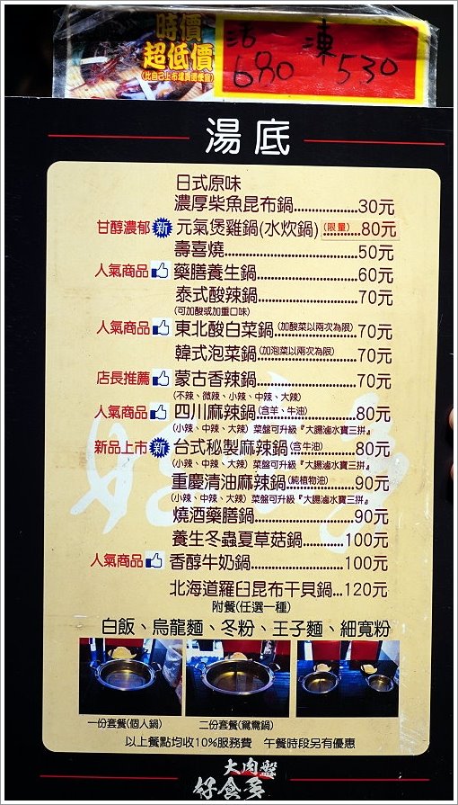 ▼這裡提供的湯底就有16種之多,光是麻辣鍋就有好幾種可供選擇,真是太厲害啦!如果不知道要選什麼口味的朋友,也可以參考上頭的推薦,從清淡到濃重通通都有,包準可以滿足不同族群的需求!
