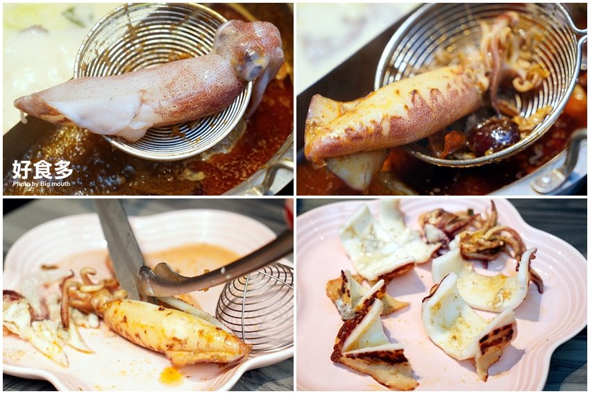 ▼菜盤換的基隆燈照小卷也是非常大一尾,不僅尺寸完全超越大撈網,而且煮完還是相當大一隻,吃起來很過癮啊!服務人員除了幫忙下鍋烹煮之外,起鍋後還會去掉透明的骨頭、分切完成才上桌,一整個超貼心!吃起來香Q脆彈,還有濃濃的鮮美海味,讓愛吃小卷的我們吃得很開心!