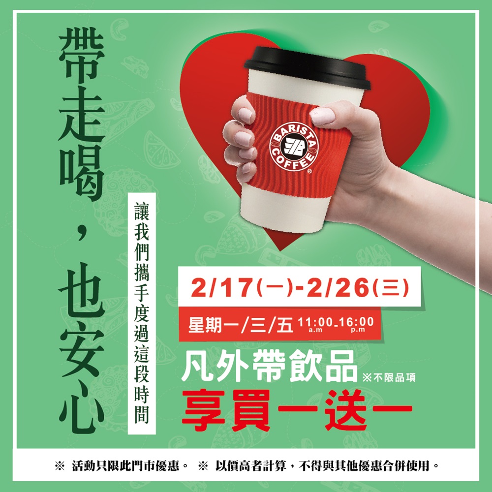 近日新型冠狀病毒疫情升溫,台北好幾間觀光飯店都因此暫時停止供應自助餐,因應來店用餐客人減少,不少餐廳與店家都推出外帶優惠,像西雅圖極品咖啡門市即日起至2/26每週一、三、五,早上11:00點至下午16:00點,就推出《外帶飲品第二杯免費招待》,提倡《帶走喝,也安心》,用溫暖的咖啡為大家加油,一同度過這段非常時期。