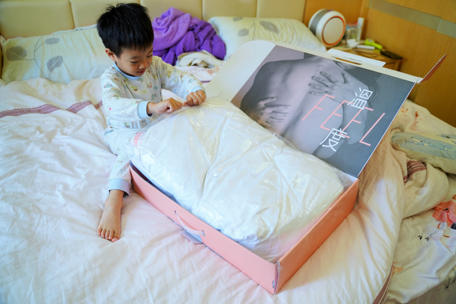 羽毛枕可以感受一下躺下去的支撐力,我個人是覺得很舒適,讓肩頸不會覺得哪麼緊繃