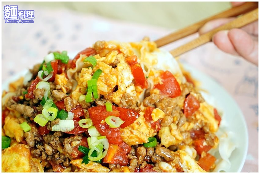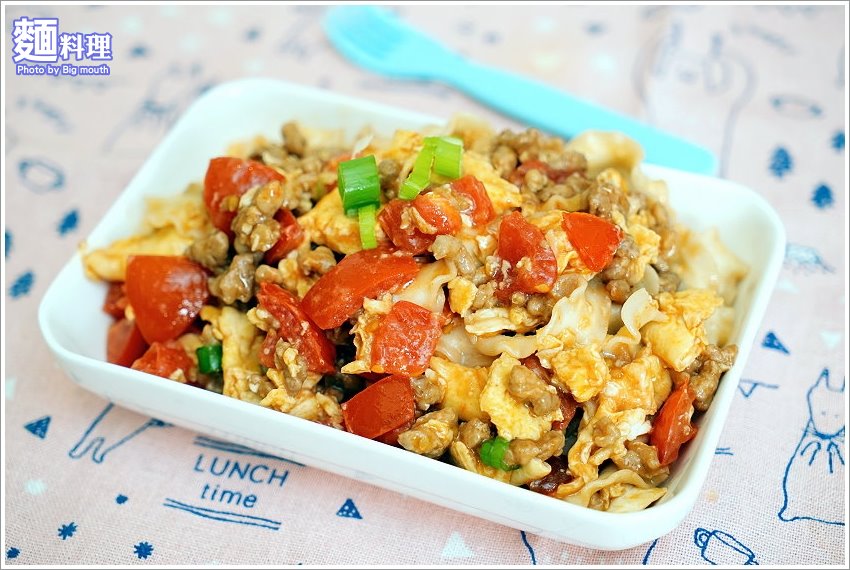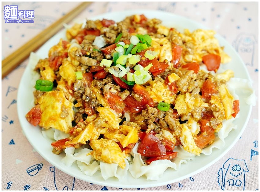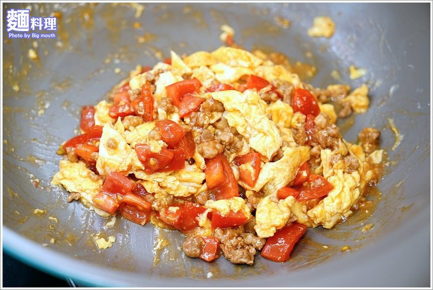 ▼接著就是把拌炒好的番茄肉燥蛋花淋上去~