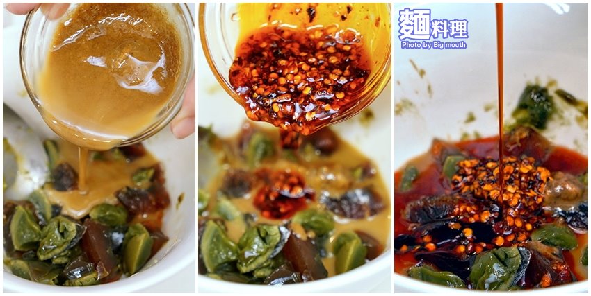 2.依序加入獨家醬料包、芝麻醬、辣油並攪拌均勻