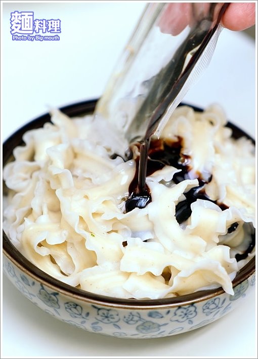 ▼麵條呈現微捲的波浪狀,看起來就像是會跳舞的蕾絲一樣,更能將醬料巴附上去!