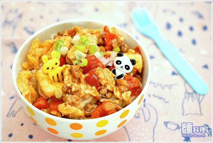▼番茄肉燥蛋花麵也非常對小口妹的味蕾,大口大口的塞進嘴巴裡,看起來很捧場唷!