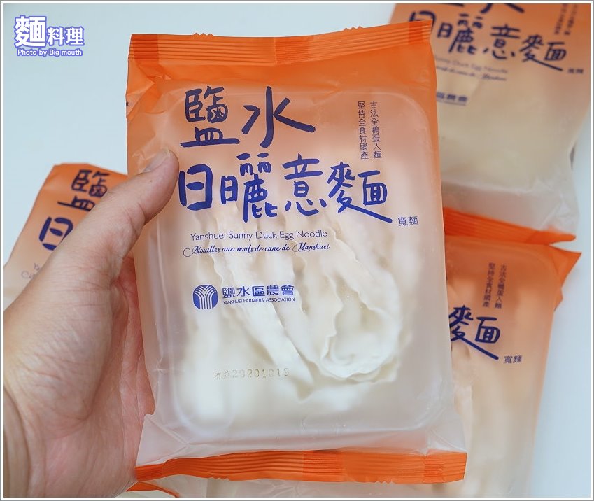 ▼這款「鹽水日曬意麵」跟一般麵條不同的是製作過程不加一滴水,也就是以全鴨蛋來取代水,搭配國產小麥粉、玉米粉為主要原料下去製成,不僅全部採用國產食材,而且堅持日曬、不添加防腐劑,口感更加有嚼勁!麵條也很特別,有別於以往常見的傳統鹽水意麵,是外薄內厚的寬版蕾絲麵,搭配裡頭附的醬料,輕鬆就能品嘗「鹽水日曬意麵」的好味道!