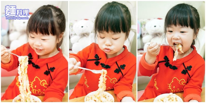 ▼小口妹是吃貨,看到弟弟的鮮蝦南瓜麵也很有興趣,還偷吃了好幾口(笑)!