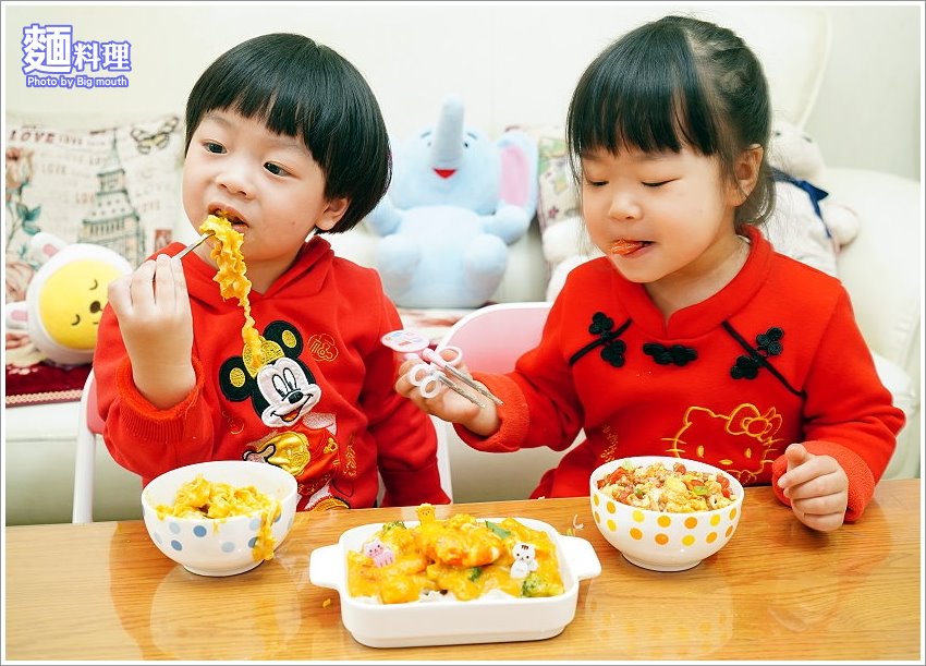 ▼小口妹跟小口弟看到這兩道意麵料理都非常有興趣,立刻就塞入嘴巴裡,時不時還用手來輔助XD比賽誰吃得比較快的概念,哈!