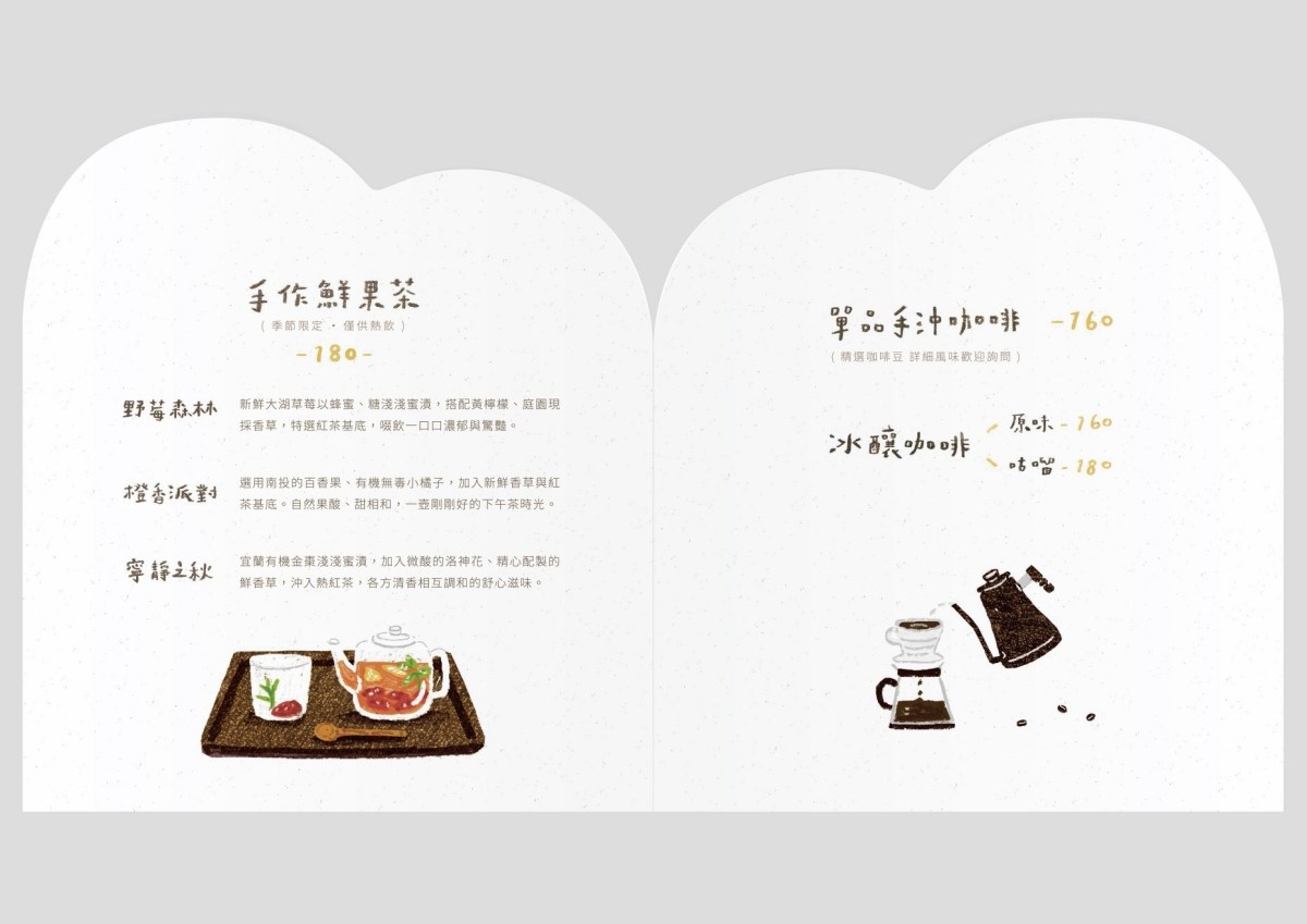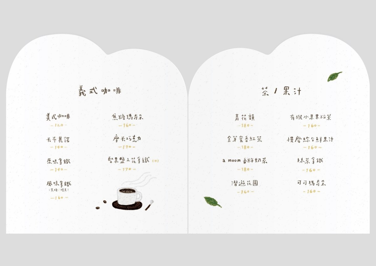 飲品提供手沖咖啡、義式咖啡、手作鮮果茶、茶、果汁等選擇,總品項不多,但是在這悠閒的坐著吃些點心,已經足夠了。