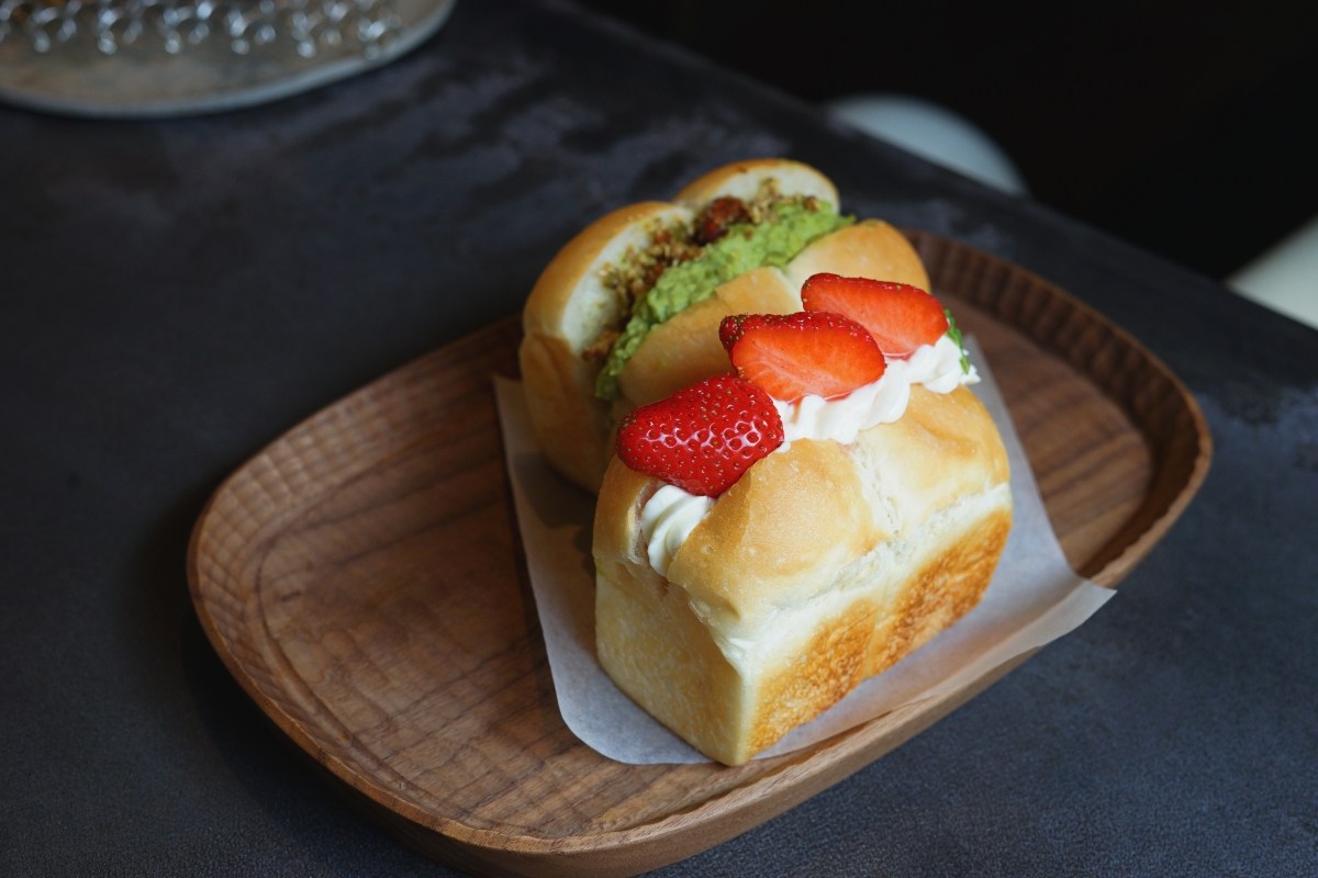 山形吐司可以鹹甜搭配組合,依自己喜歡的口味選兩種。Chloe 選了毛豆泥和草莓乳酪,近期有比較多毛豆食材的餐點,像是之前在雪花冰店也有吃到毛豆的口味,這次來到 A-moom 也有毛豆,喜歡吃毛豆的 Chloe 就點了,其實當下我有點驚訝,沒想到他會點這個口味(笑)