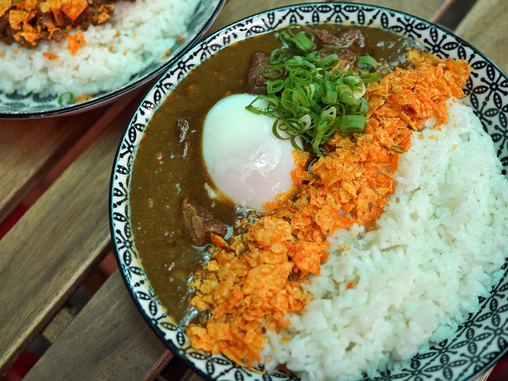 咖哩醬使用蔬菜熬煮,再經過48小時的低溫熟成,呈現出如此濃郁的口感,味道甘甜之中帶點微微的辛香,辣度可隨個人喜好調整唷!香Q的米飯拌上濃郁的咖哩醬汁、軟嫩的牛肋條、酥脆的餅乾碎片、蔥花與半熟蛋,層層堆疊的口感很不錯、溫潤順口,一份創意與美味兼具的咖哩飯。
