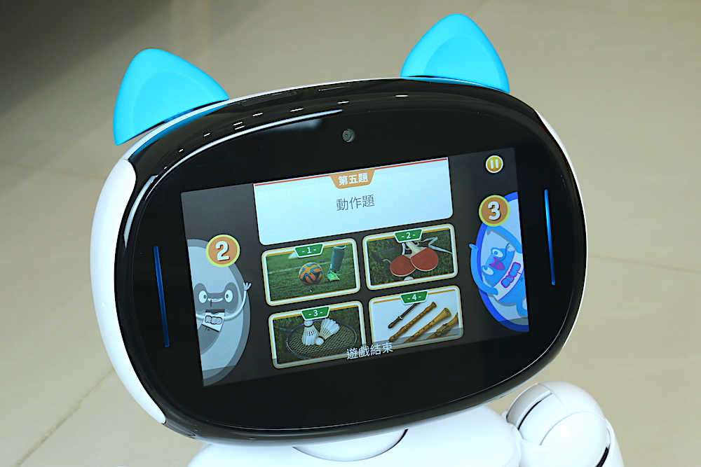 前面有提到,Kebbi Air 凱比的雙手是由多個馬達、關節組成,且底部設有可以任意移動的滾輪。也因為這樣,大腦戰爭不只有文字、音效這類靜態題目,還會隨機出現讓人會心一笑的動作題,藉由不同類型的遊戲方式強化孩子的聯想力。