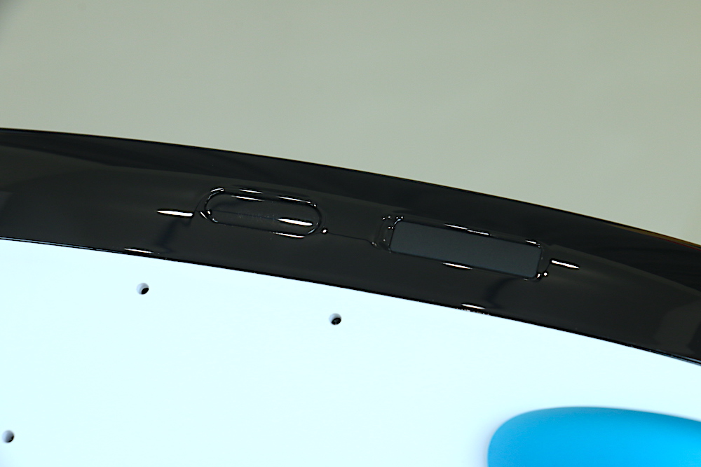 電源鍵與 microSD 記憶卡插槽皆設置在頭頂前方黑色邊框中,開/關機或擴充儲存空間都可在此完成。