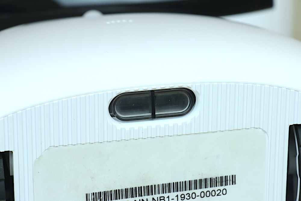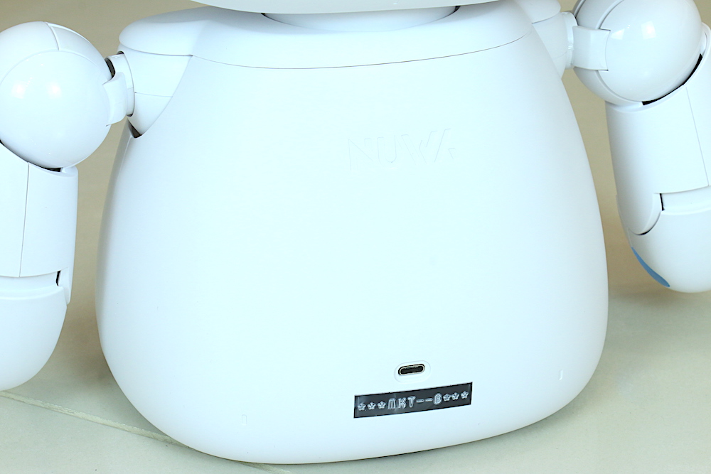機身底部除了滾輪、揚聲器之外,前端還配有一個紅外線感應器,當偵測到機身被抬起,或是靠近桌緣、樓梯、地板高低落差…等有可能摔落的地方時,就會自動發出警告,並停止機器人前進的動作,直到狀況排除才會繼續動作。