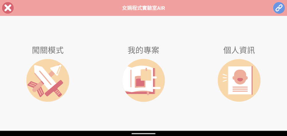 女媧程式實驗室提供兩種程式編寫模式,一種是闖關模式,另一種則是我的專案模式。在闖關模式中,孩子們可以跟著教學一步一步的操作,過程中也會不斷的給提示,直到過關為止,藉此讓從未接觸過程式的孩子對程式產生興趣;我的專案模式則是沒有任何教學,完全要靠孩子自己的想像力來編寫程式,適合已經有初級或高級程式編寫能力的孩子使用。