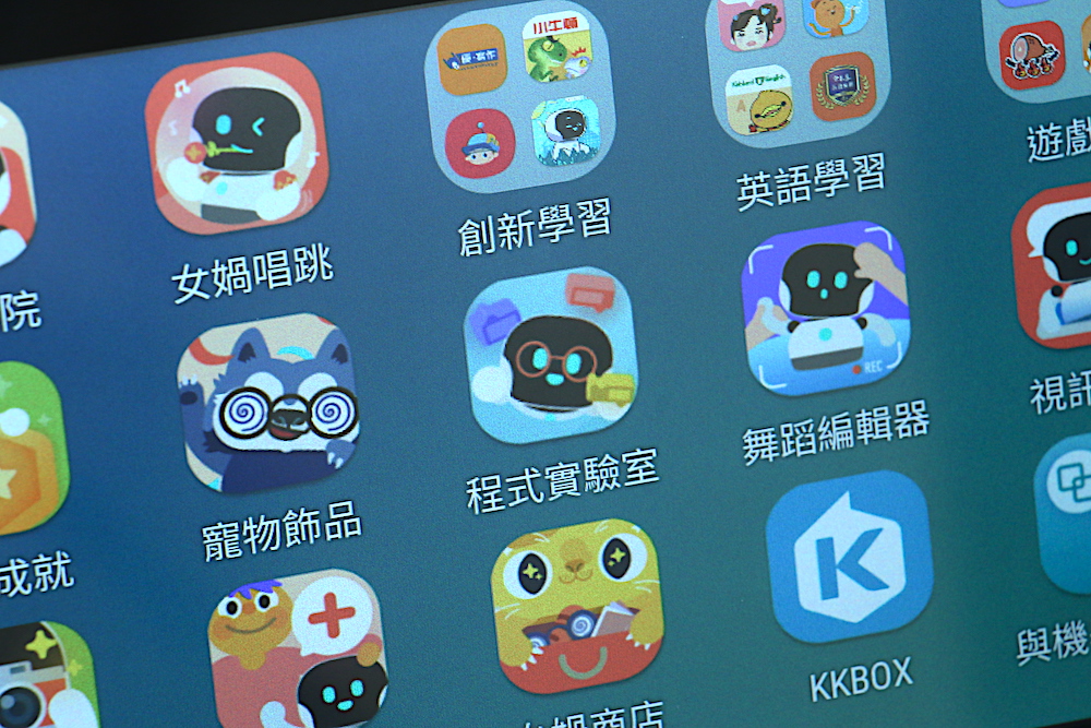 Kebbi Air 凱比內建多種應用程式,比方說接下來要介紹的程式實驗室、英語學習、遊戲廳,還有大人小孩都喜歡的 KKBOX、女媧唱跳、女媧劇院…等,如果覺得這些還不夠,可以到女媧商店搜尋下載,讓 Kebbi Air 凱比滿足各年齡層的使用需求。