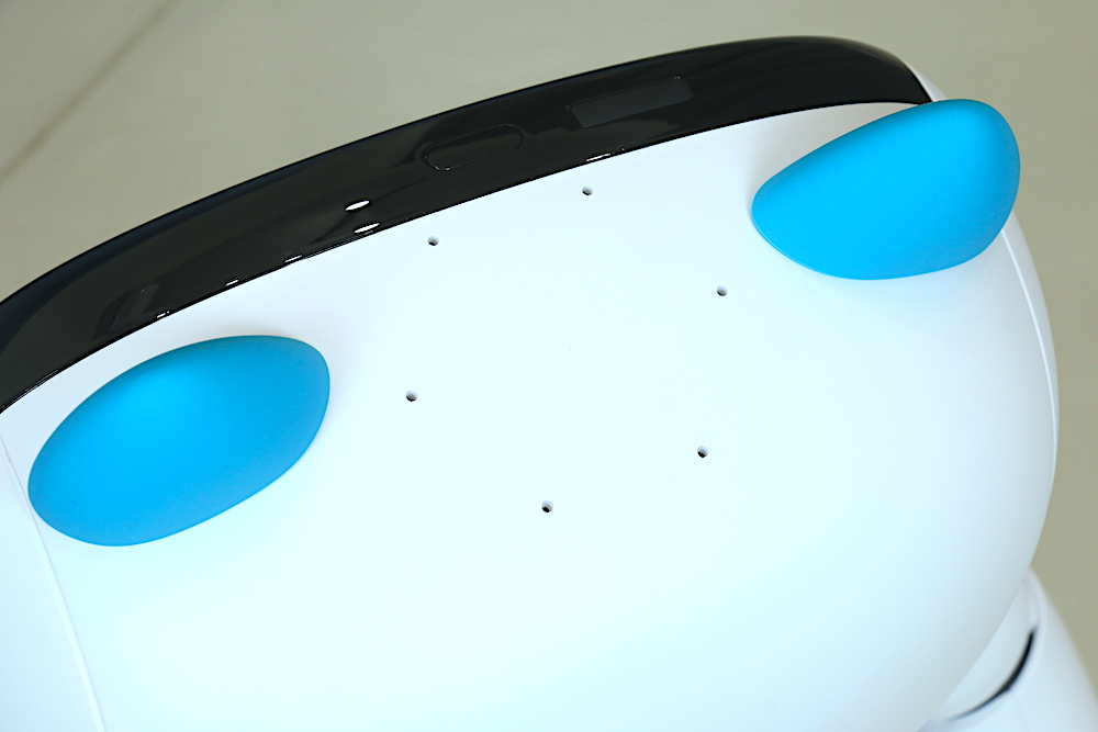 頭頂六個孔洞是麥克風,所有指令都從這接收。麥克風周圍則是頭部觸摸區,與臉頰觸摸區一樣,只要觸摸後它就會做出對應的反應與表情。