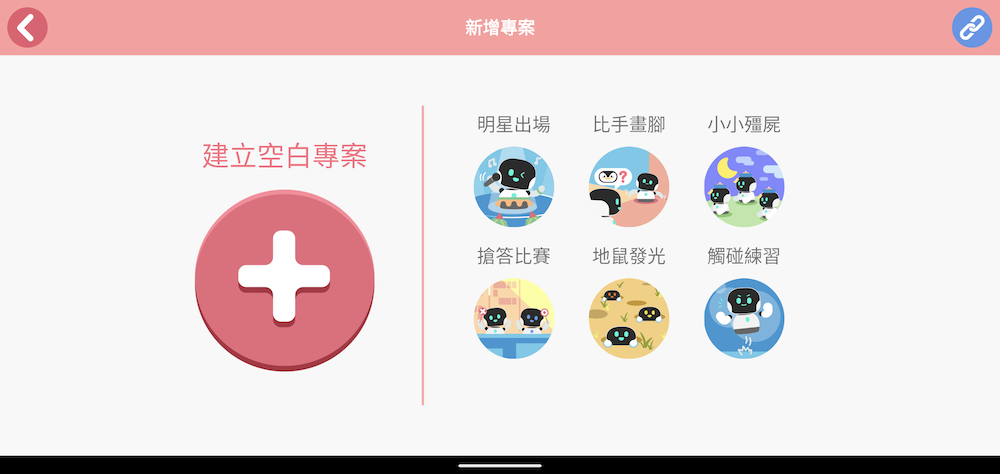 雖說我的專案模式是提供給已有初級或高級程式編寫能力的孩子使用,但裡面還是貼心的提供六組高層級程式範例給孩子們參考,想要了解程式該怎麼寫才能讓動作更多元,不妨可以從這去學習。