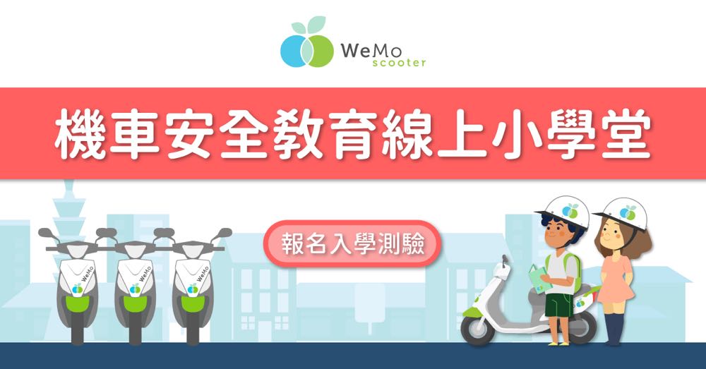 機車防禦駕駛,保障機車族的生命安全,24 小時隨租隨還共享機車 WeMo Scooter 響應交通部推廣道路安全願景,宣布今年正式為 WeMo Scooter 機車安心安全元年,運用「新版機車筆試題庫」及「機車危險感知教育平台影片題庫」,以嶄新的方式擴大推廣機車安全教育。首波安全教育線上小學堂專欄-「再戰駕訓班」,用趣味