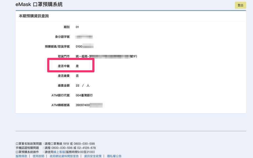 。如果還沒收到信件的朋友,現在起也可以前往 eMask 口罩預購系統進行查詢!