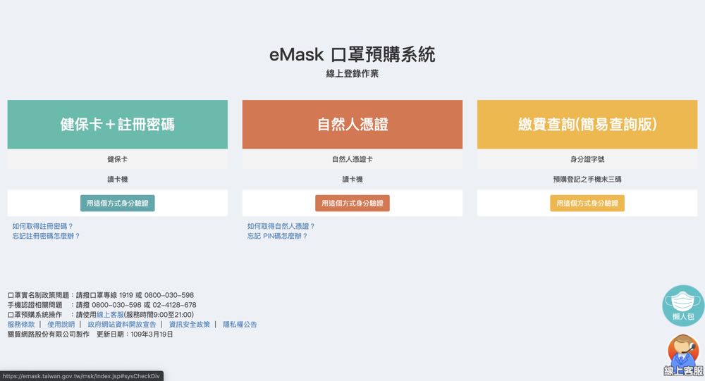 eMask 口罩預購系統: https://emask.taiwan.gov.tw