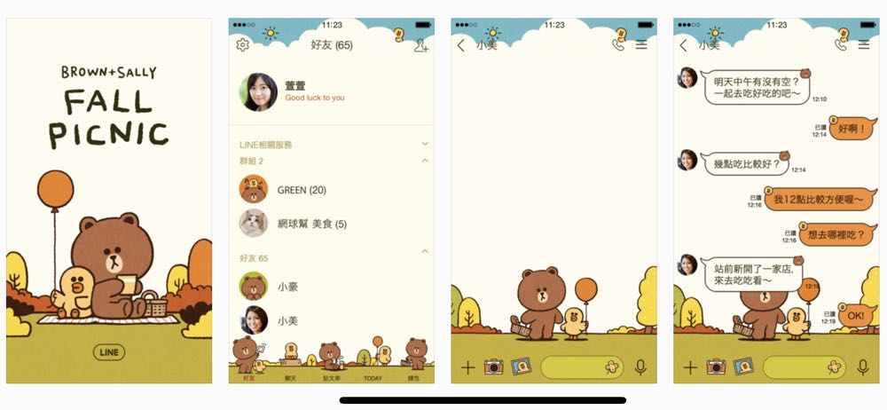LINE 偶爾會為大家帶來可愛的限時免費主題,這次帶來的就是 BROWN & FRIENDS(深秋野餐篇),這次主題特地使用牛皮紙風格的圖案設計,為大家帶來溫馨舒適的感覺,找大家一起和熊大和莎莉去野餐!